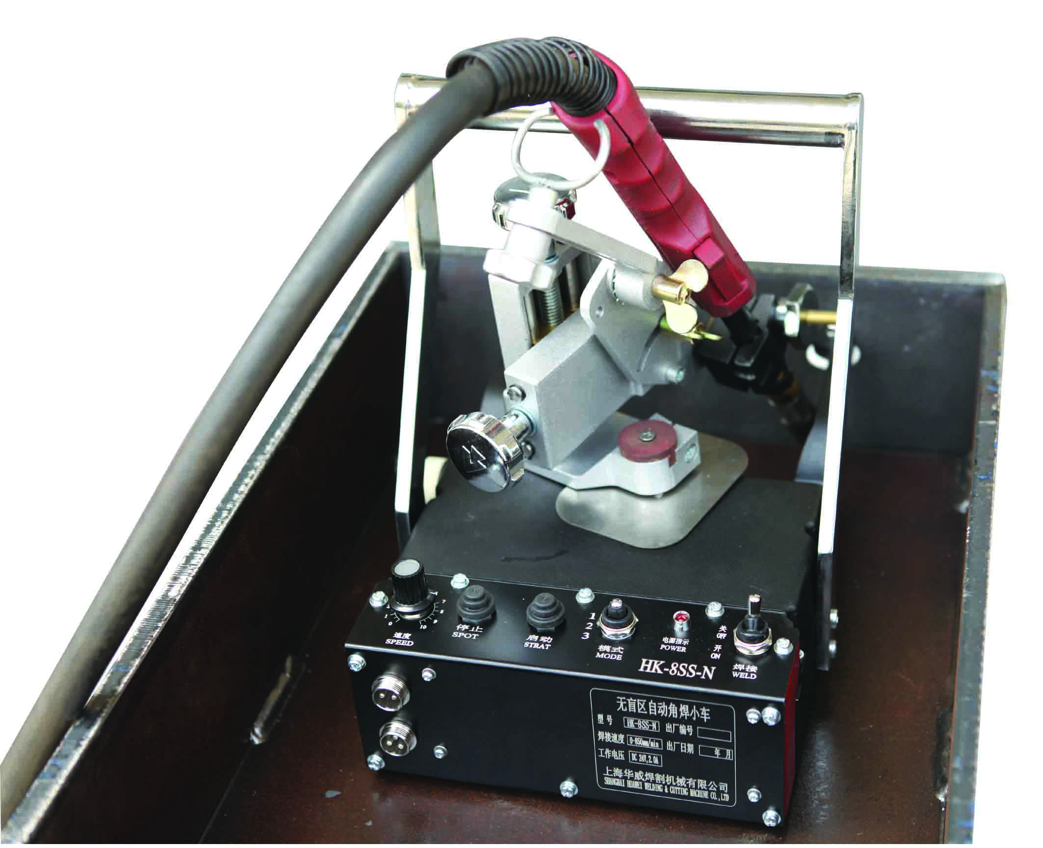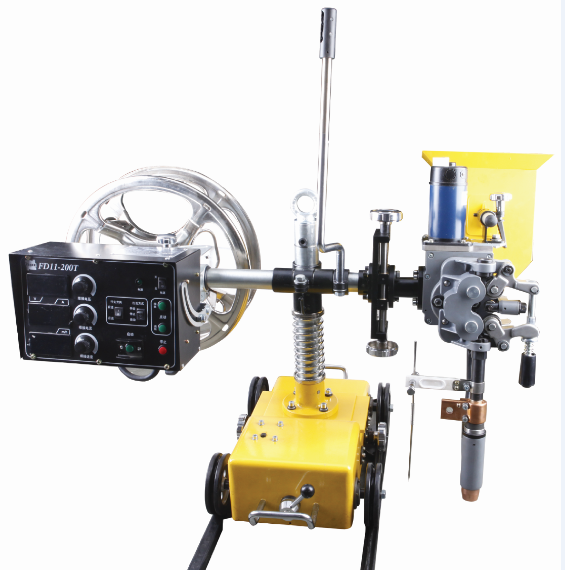 黥器和焊槍調整機構。焊接電源、筒體轉胎和焊絲盤為常規設備。其創新之處在于:一是焊接小車體積小、,