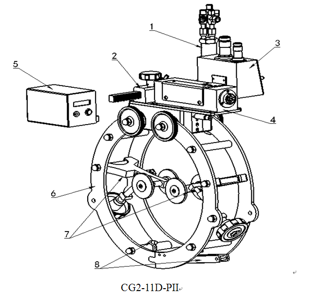 6.圓形導軌 7.夾緊裝置 8鎖緊裝置