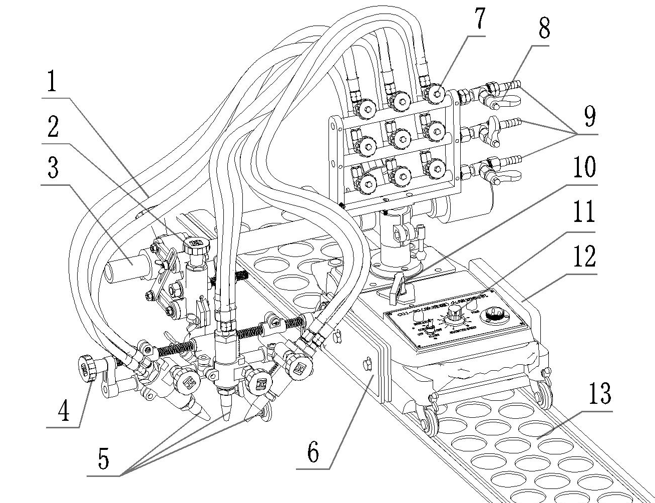 2.移動(dòng)體升降手輪:調(diào)節(jié)三組割炬與鋼板的高度