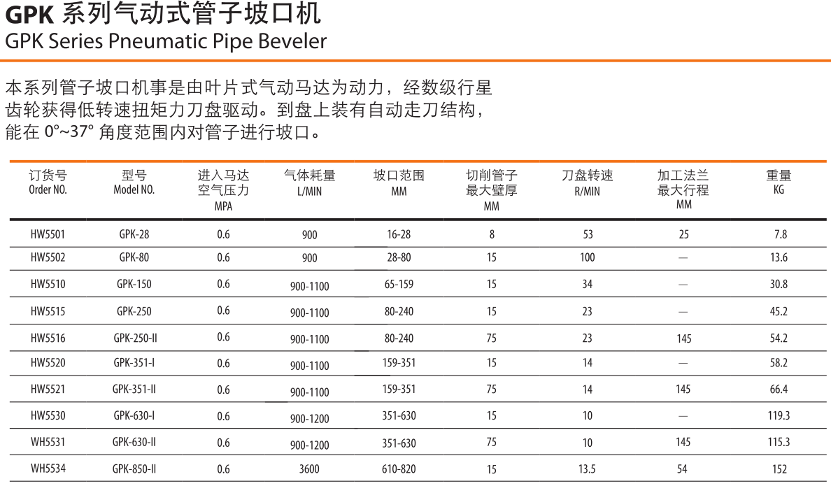 GPK系列坡口機(jī)專(zhuān)為鋼管的倒角、焊接坡口的切削而設(shè)計(jì)。其采用氣動(dòng)馬達(dá)作為動(dòng)力,內(nèi)漲式結(jié)構(gòu),自動(dòng)定位鋼管中心,操作方便。本機(jī)可對(duì)鋼管進(jìn)行倒角、焊接坡口及法蘭平面進(jìn)行加工。 無(wú)論管壁厚薄,其加工性能與效率比起傳統(tǒng)工藝都有著不可替代的優(yōu)勢(shì)。