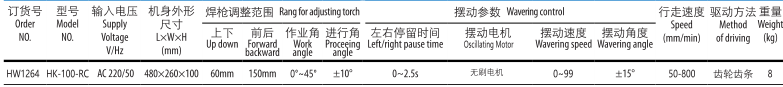 HK-100-RC 擺動(dòng)式自動(dòng)焊接小車,對(duì)接垂直水平等多用途自動(dòng)焊接小車,焊槍具有擺動(dòng)功能,通過設(shè)置擺動(dòng)速度,角度,中心偏移位置哦左右停留時(shí)間來獲得最佳焊接效果。通過數(shù)顯可準(zhǔn)確設(shè)置速度以及擺頭的參數(shù)。驅(qū)動(dòng)部位安裝了手動(dòng)離合器,方便了機(jī)器在軌道上定 位及返回焊接起點(diǎn),小型軌道移動(dòng)方便,安裝有離合球磁螭使用方便。廣泛應(yīng)用于船舶、橋梁、機(jī)車、石油化工,鋼結(jié)構(gòu)工程等。 注:標(biāo)配一根長度為1.8米的導(dǎo)軌。