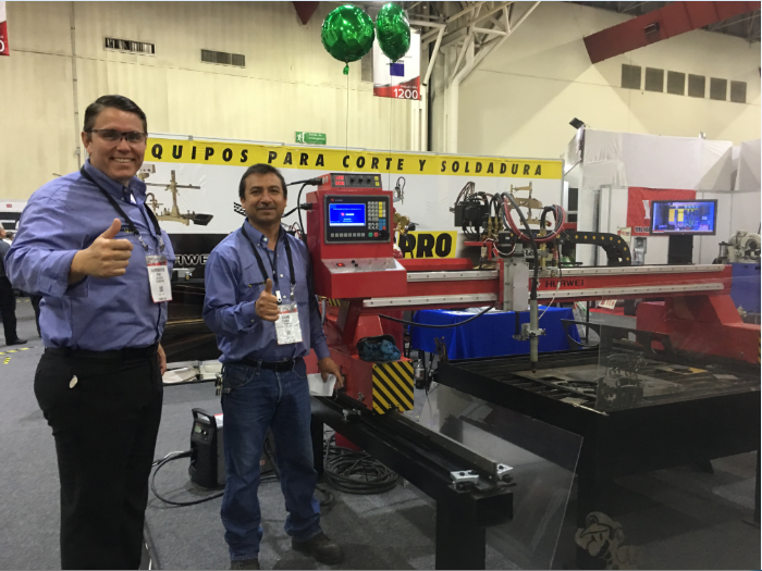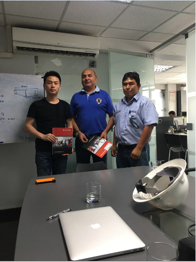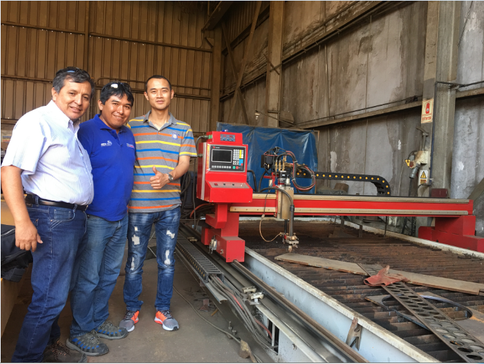 華威工程師在秘魯與客戶一同拜訪客戶并保養(yǎng)切割機(jī)器。