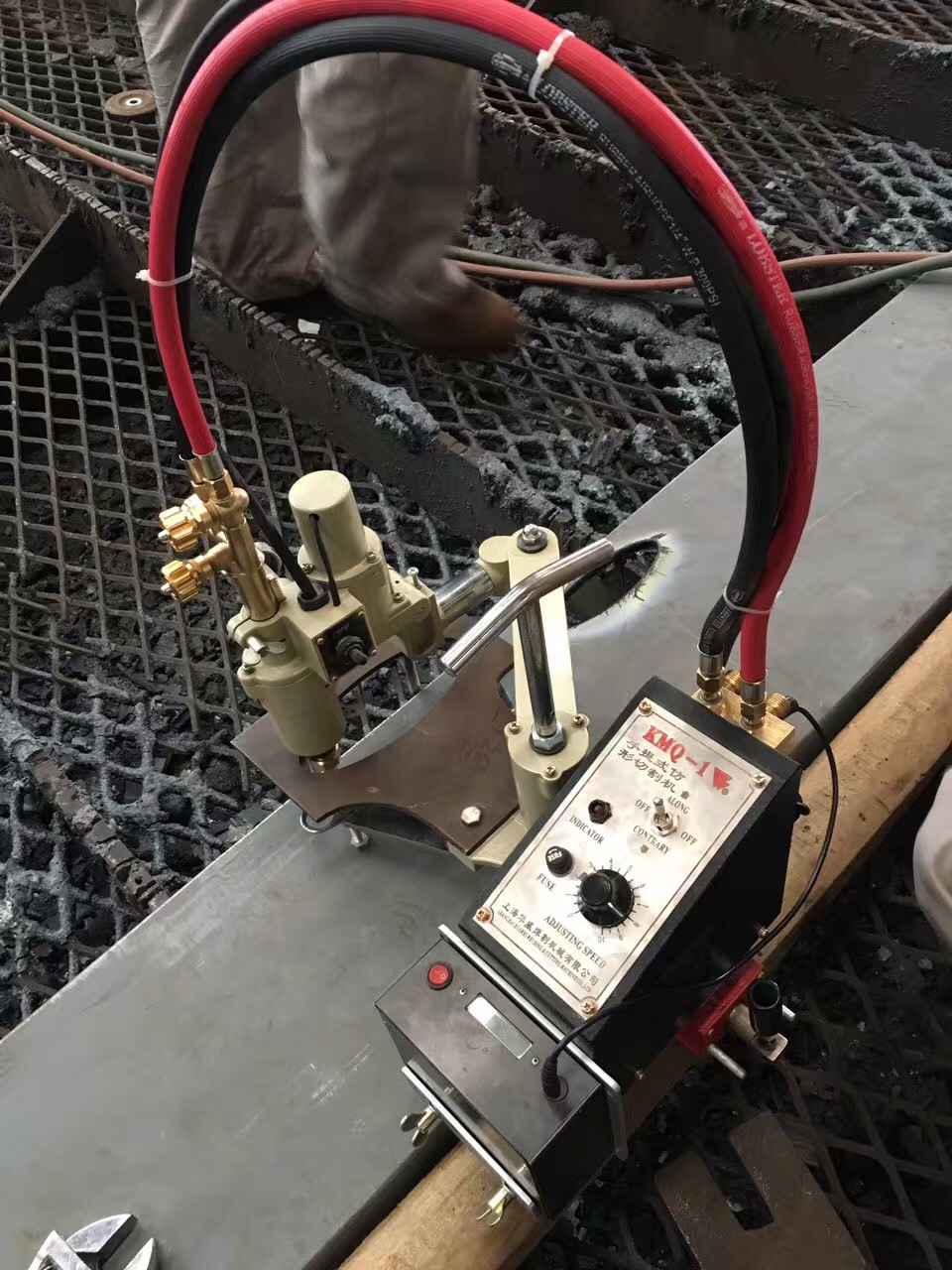 華威焊割電池驅動仿形切割機在上海某造船廠投入使用