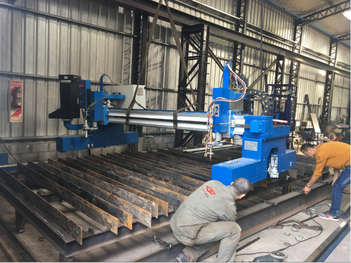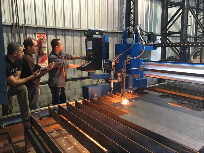 華威焊割工程師在阿根廷培訓客戶使用數控切割機、焊接小車、坡口機。